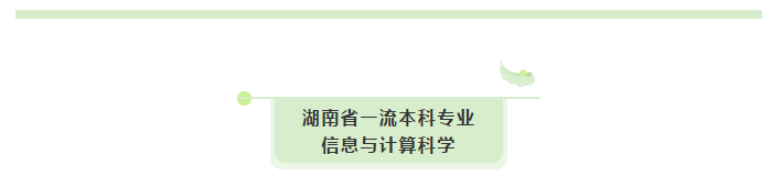 信息与计算科学专业是湖南省双一流建设本科专业、公司综合改革试点专业。现有专业实验室3个,稳定的校外实践教学基地7个。教育部产学合作协同育人实践基地1个,湖南省普通高校校企合作创新创业基地1个。教学办公设备和多媒体教室能满足本专业理论教学及实践教学的需要。