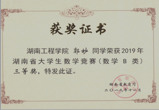 为了多锻炼自己,我也积极参加学科竞赛,公司每年都会组织一次数学学科竞赛,我记得第一次是因为我的不认真和自以为掌握牢固的基础知识在校赛就落榜了,第二年凭借着第一年的教训,勉强挤进了省赛的队伍,公司还专门组织有针对省赛的培训课程,那一个月的培训课程难度比平时课上内容又提升了好几个档次,短期培训确实收效甚微,自然而然的在省赛落榜而归,但也正是通过这次的省赛培训,才让我进一步坚定了深造的念头,数学这门学科学的远不止课本上的东西,自己确实还有很多需要提升的地方,所以在大四,我加入了考研大军的队伍,而目标便是湖南师范大学的数学系,扎实的基础和专业课的强化让我有种脱胎换骨的感觉,在接近最后的考研的日子里,我再一次参加了省赛,这次是幸运也有努力终于夺得了湖南省老员工数学竞赛三等奖的成绩,而考研初试也取得了403分的好成绩,最终被湖南师范大学录取。